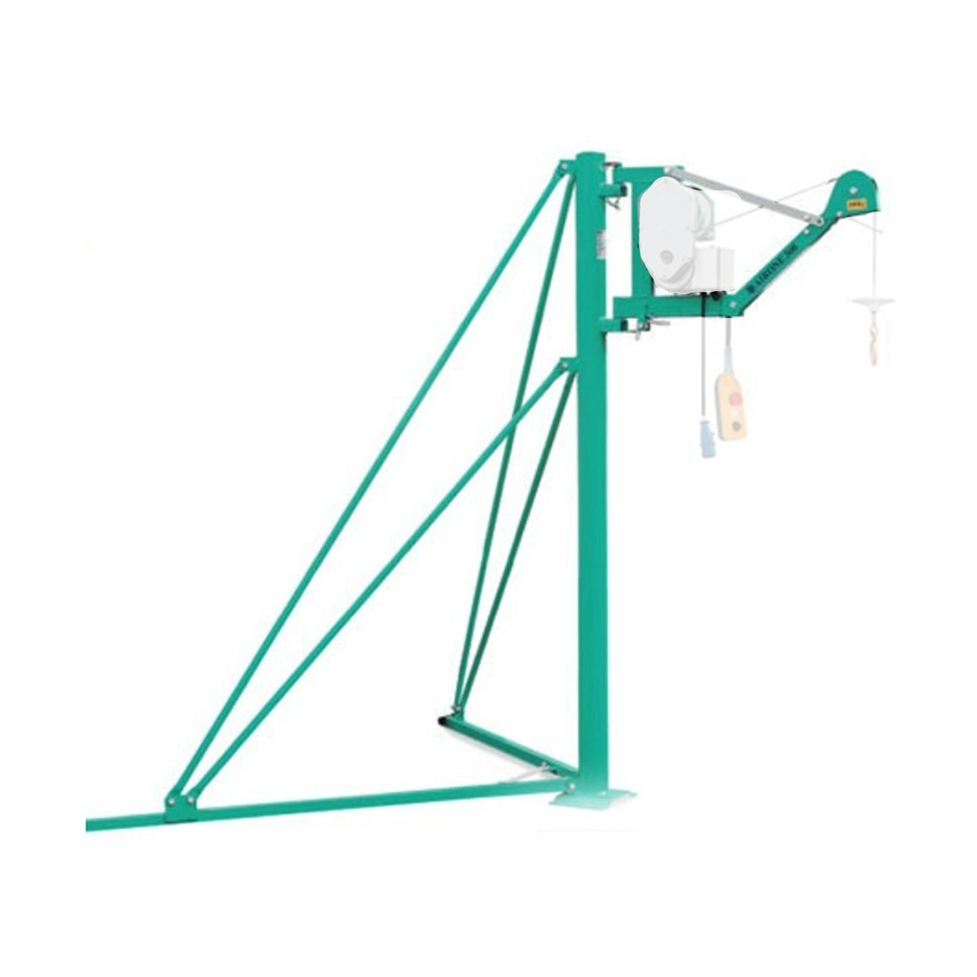 Columna con bípode para elevador IMER Airone-300. Accesorio de fijación y estabilización para instalación segura del elevador en obra. Soporte robusto y fácil montaje.