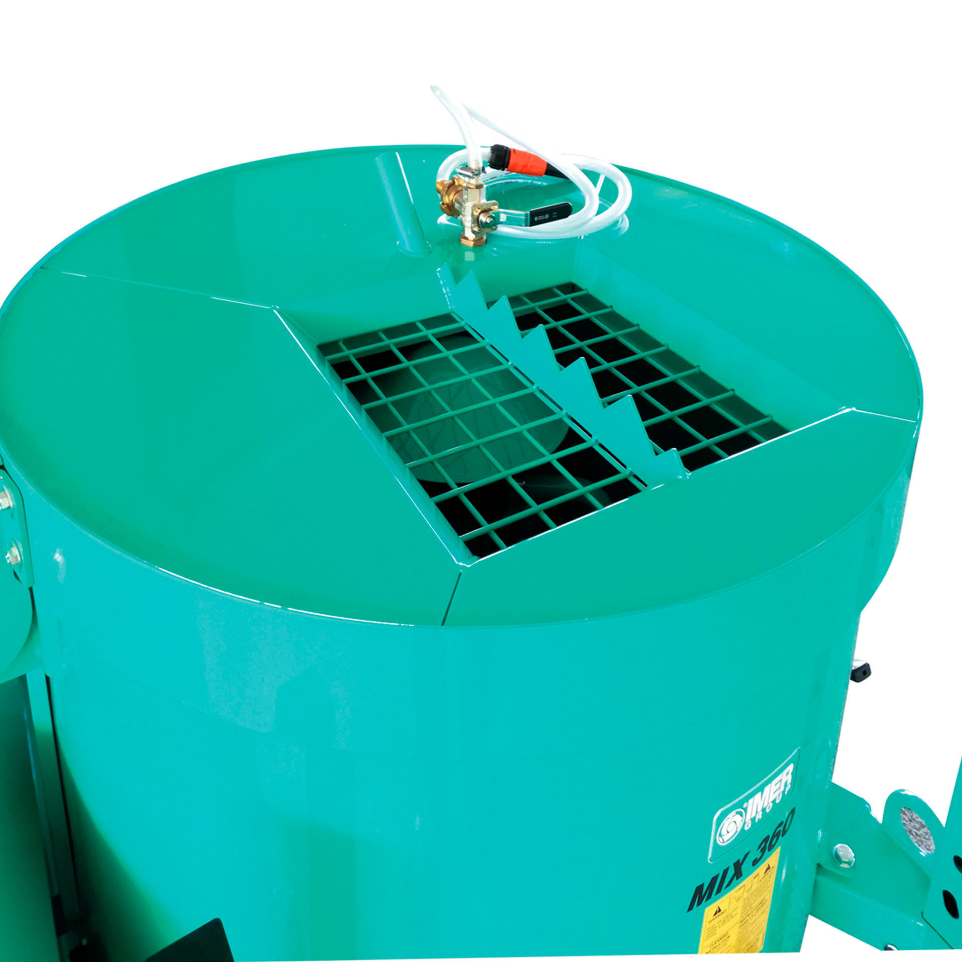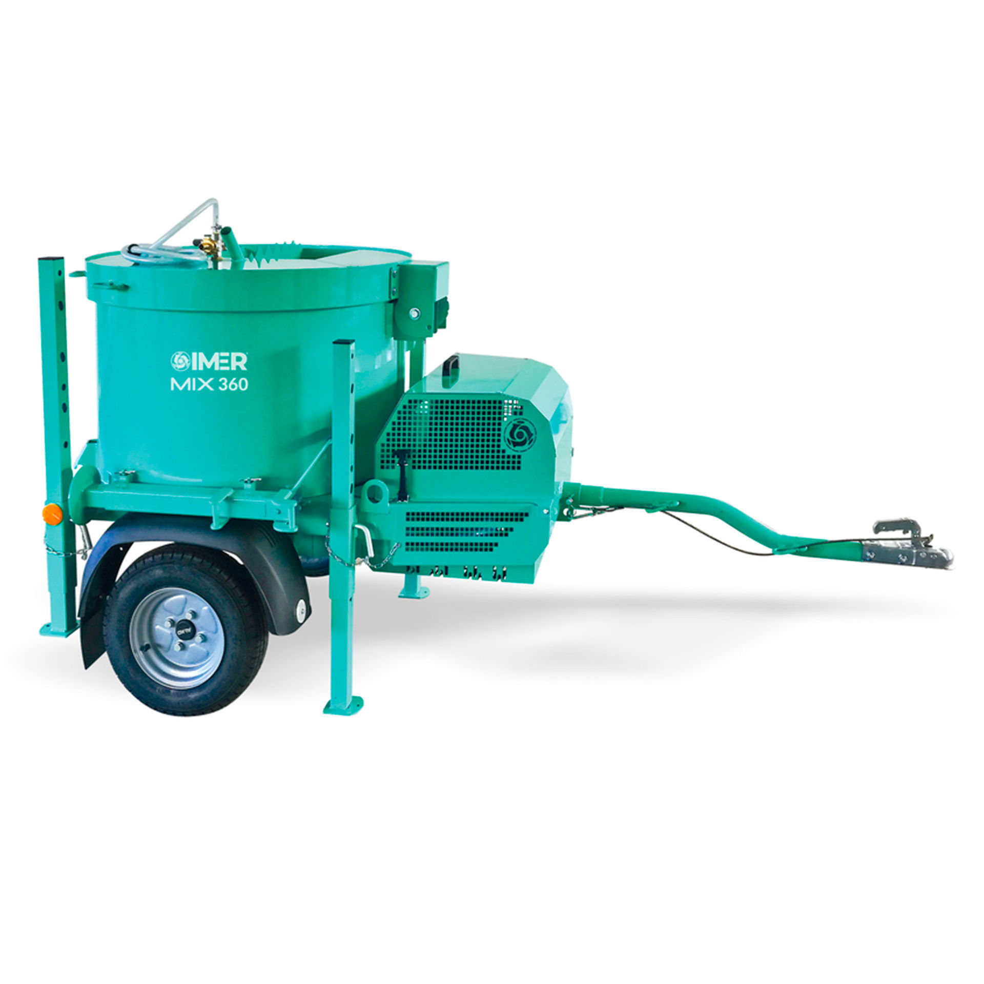 Mezcladora de mortero planetaria profesional con 360 litros de capacidad, motor trifásico de 3 kW, alta maniobrabilidad y sistema iDUST contra polvo.