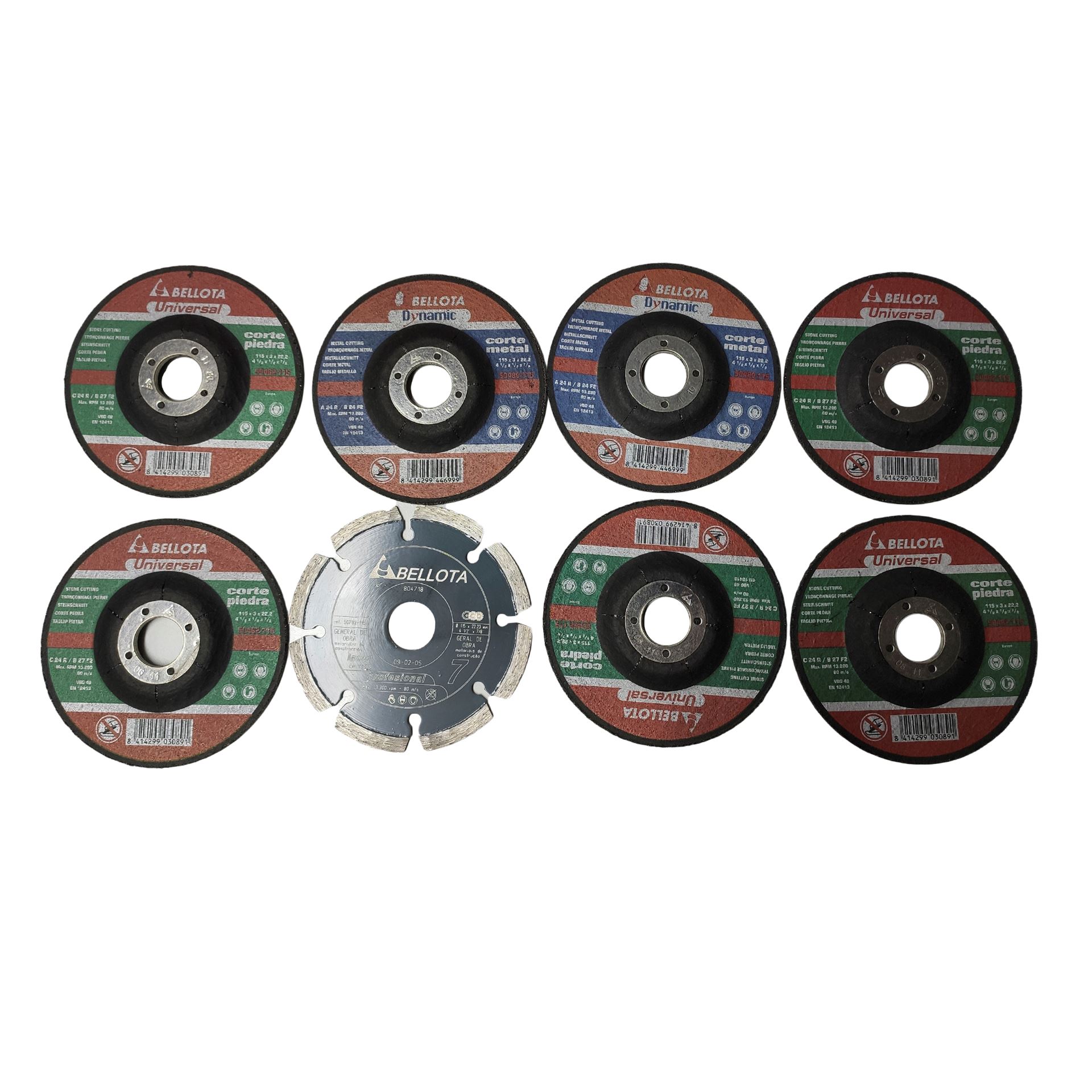 Pack compuesto por 1 disco diamante 50702-115, 5 discos de corte de piedra 50462-115 y 2 discos para metal 50480-115.