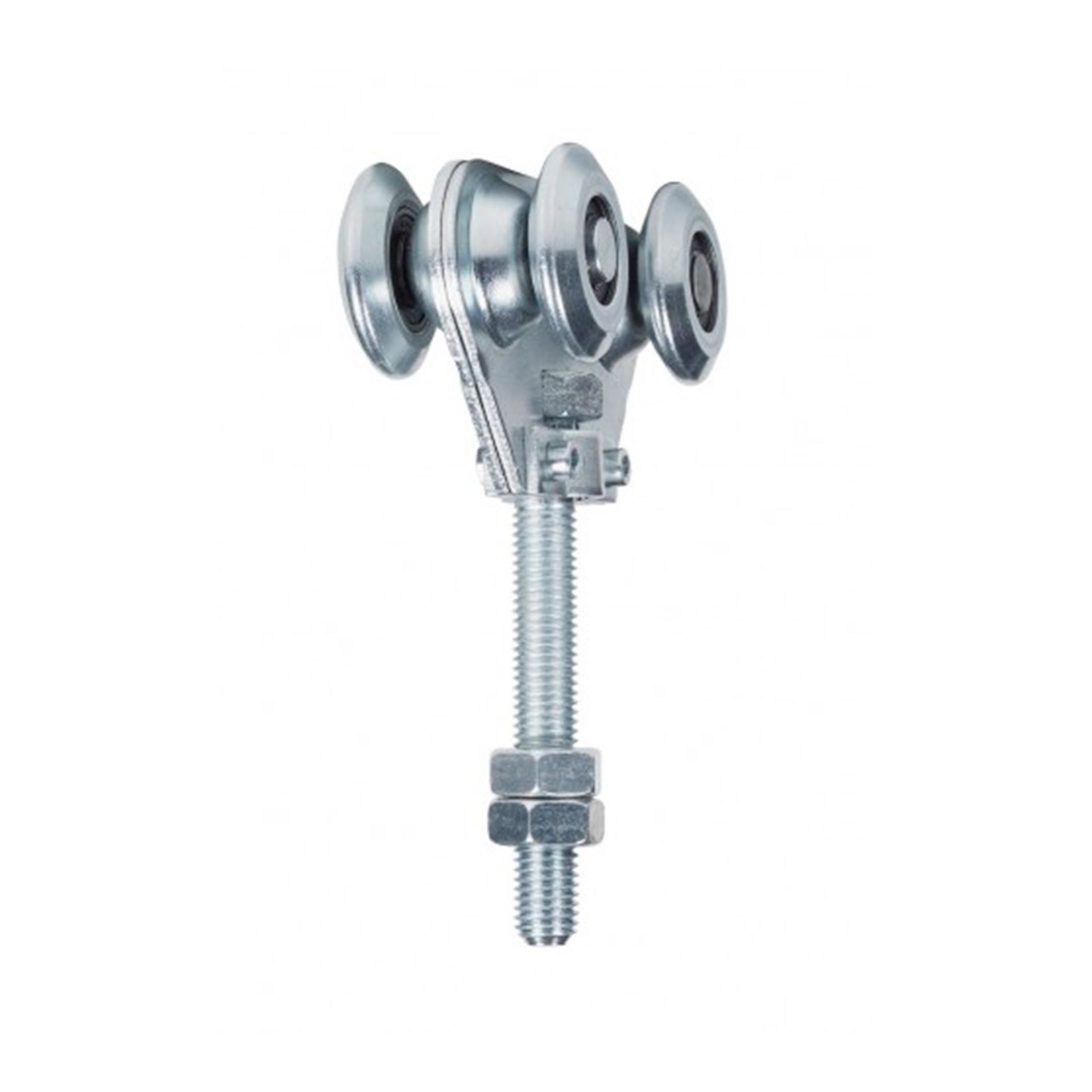 Roldana guia doble con rodamiento para puerta corredera que permite el desplazamiento suave y soporta el peso de puertas correderas, especialmente las colgadas.