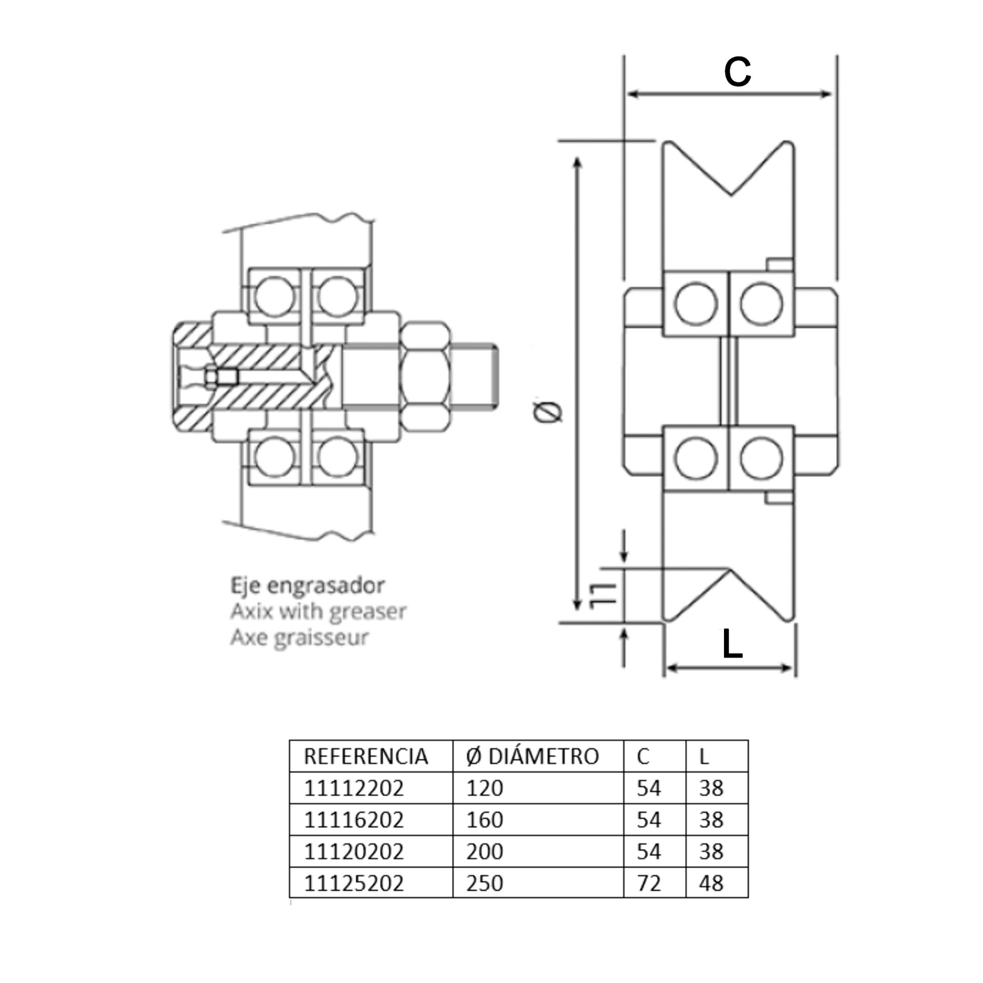 Rueda corredera doble rodamiento con engrasador canal angular Aumon