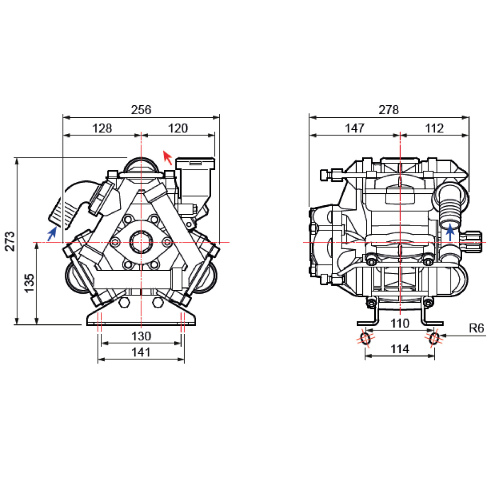 Suministrada con racor de aspiración y racor de descarga.