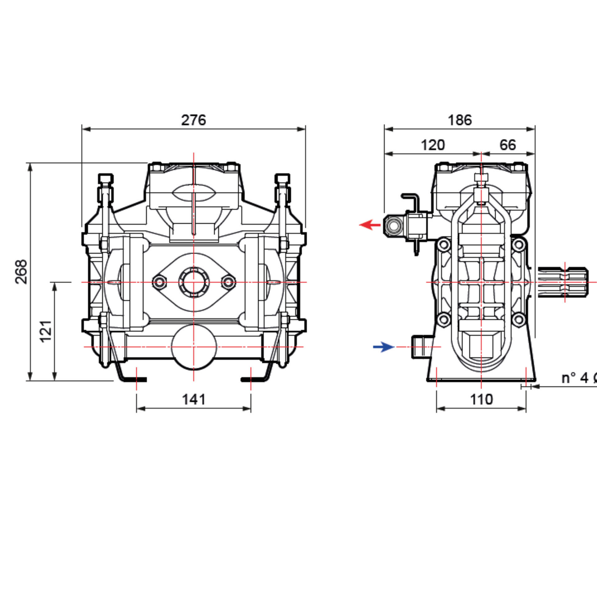 Suministrada con racor de aspiración y racor de descarga.