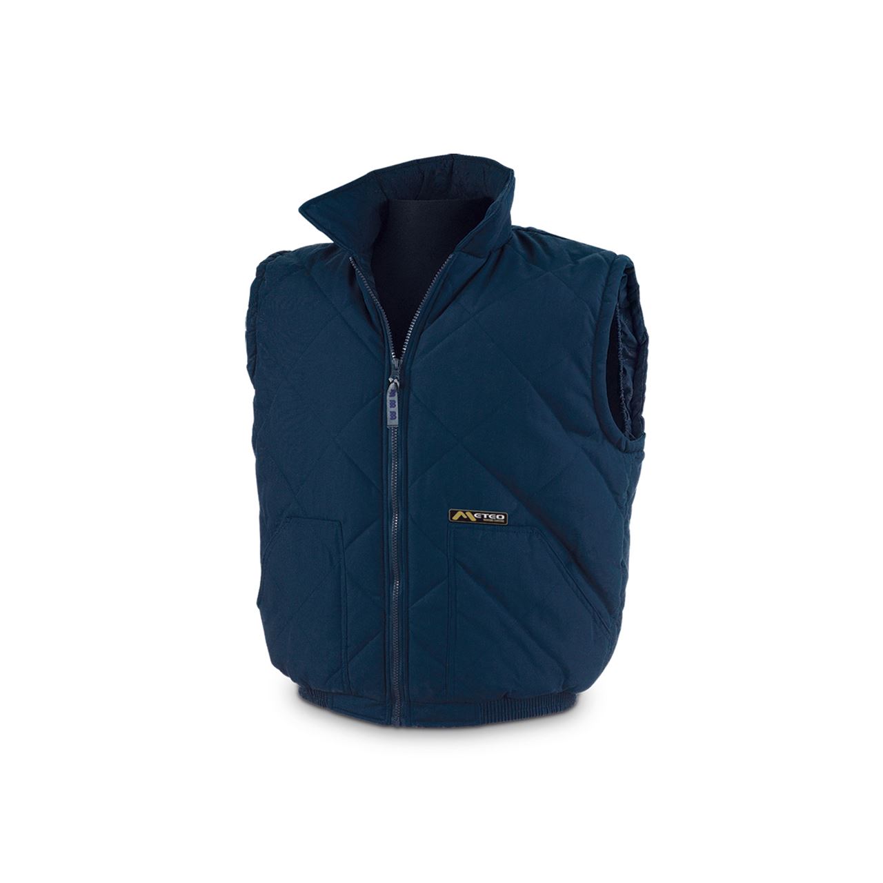 Chaleco acolchado clásico azul marino con costuras en forma de rombo.