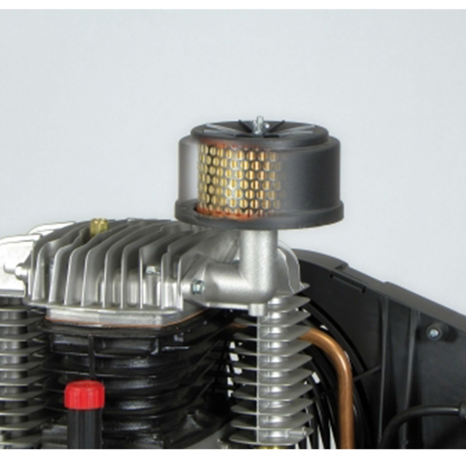 Filtro de aspiración de grandes dimensiones estudiado para reducir el sonido y optimizar el rendimiento del compresor.