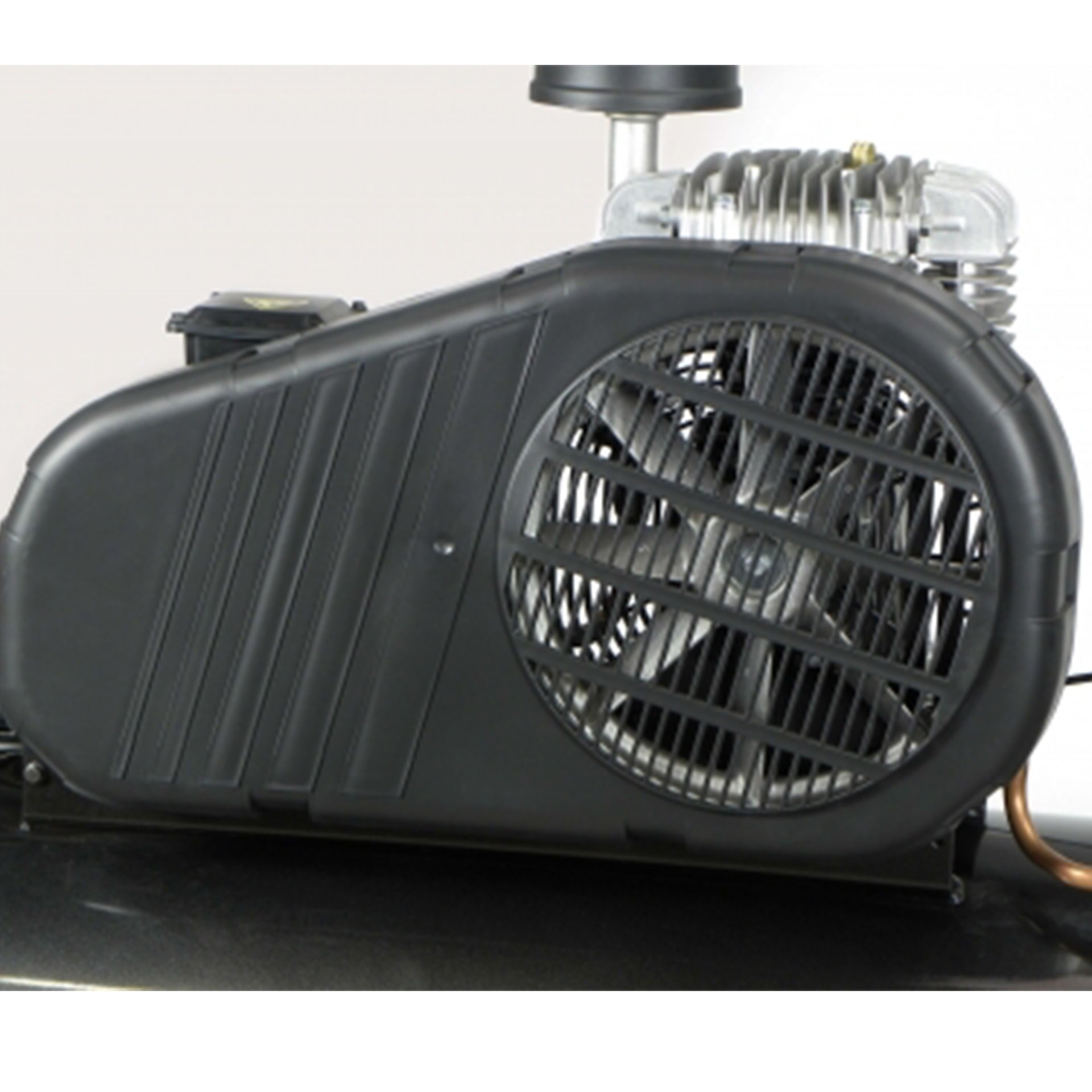 Grupo cabezal de doble etapa con cilindro de hierro dotado de amplios colectores entre etapas y posterior aleteado para mayor refrigeración.