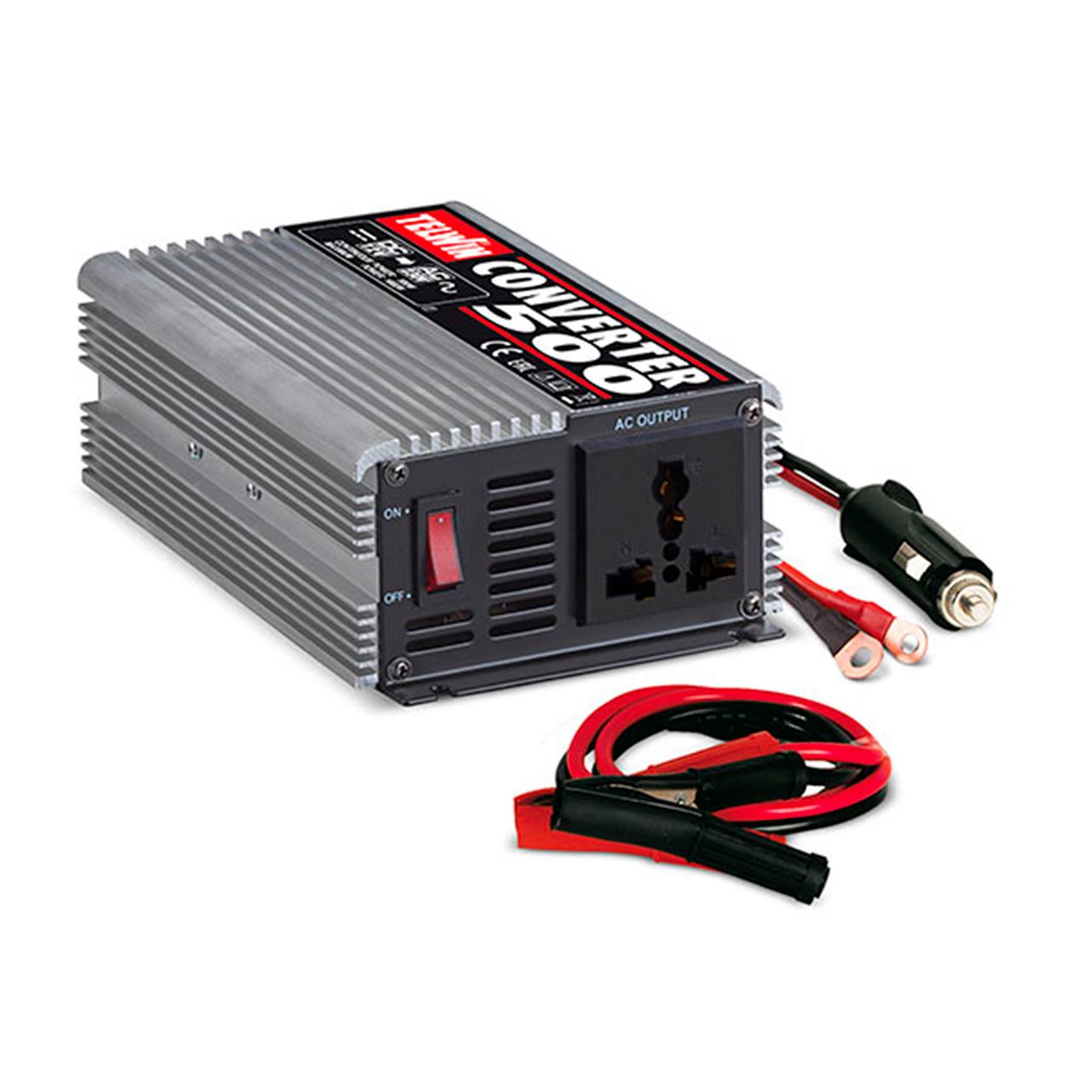 Convertidor por inverter con conexión del encendedor de cigarrillos de coches y autocaravanas que transforma la tensión de 12 V (CC) en corriente alterna 230 V (CA). Tensión continua en entrada 12 V. Tensión continua en salida (1 ph) 230 V. Frecuencia en salida 50 Hz. Potencia en carga 500 W. Potencia máxima de salida 1000 W. Ideal para alimentar pequeños aparatos eléctricos y para recargar baterías. 2 USB. Con protección contra inversión de polaridad y sobrecargas.