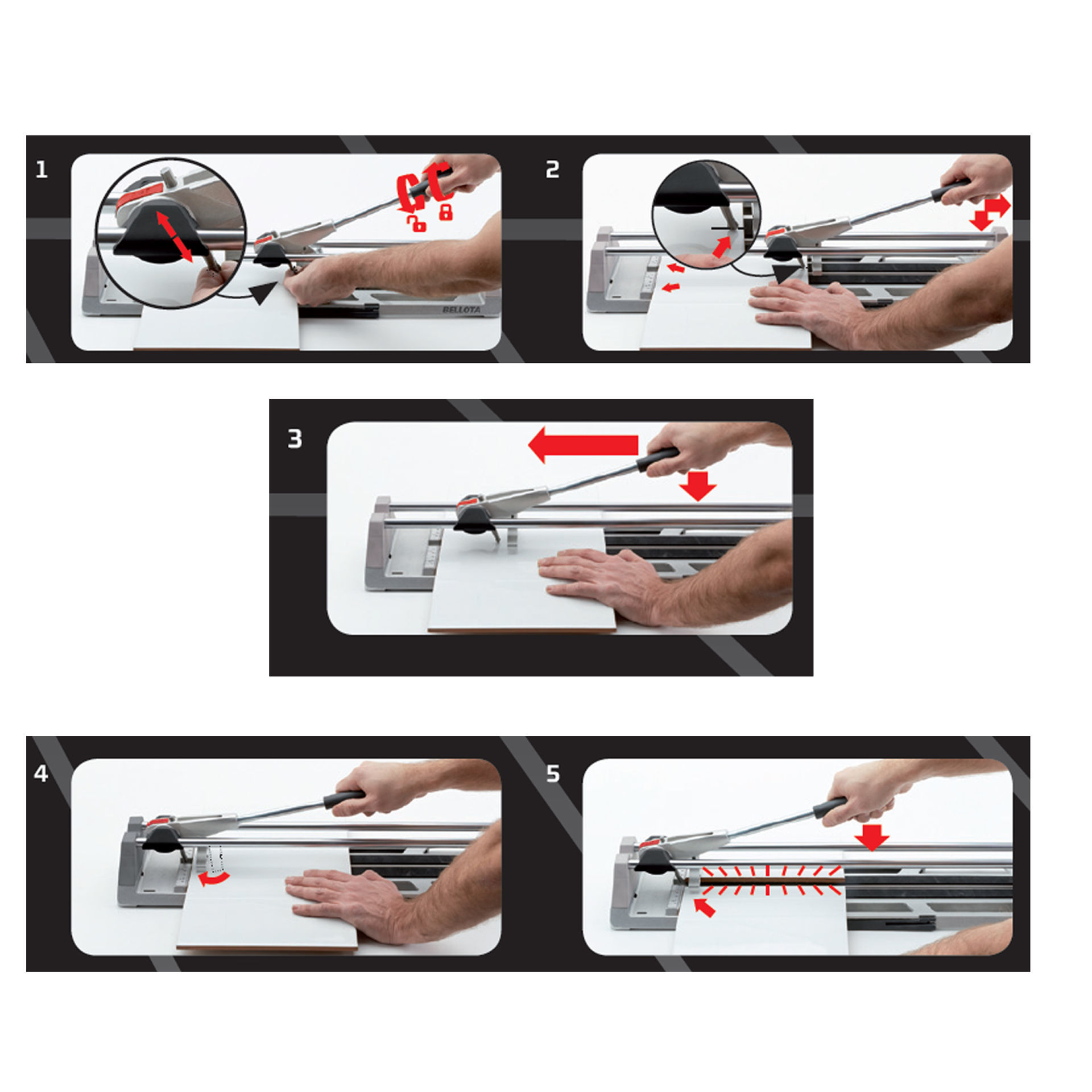 Cortadora para trabajos de alicatado para formatos cerámicos hasta 1050 mm de longitud.