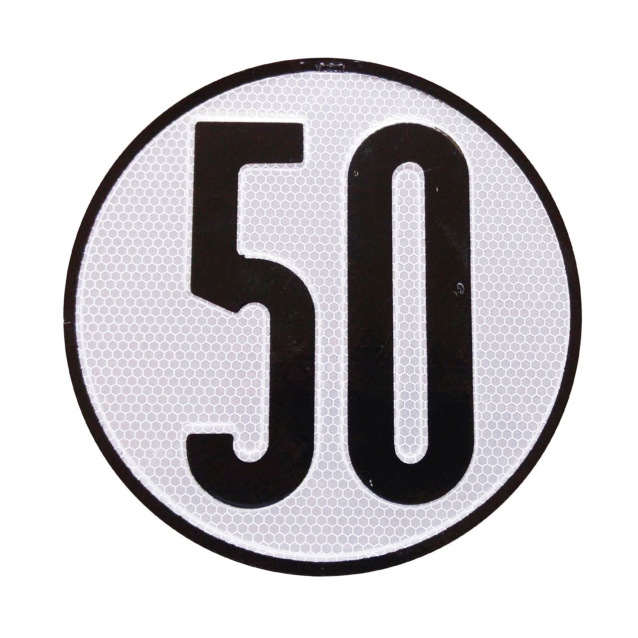 Disco reflectante de límite de velocidad de 50 km/h.