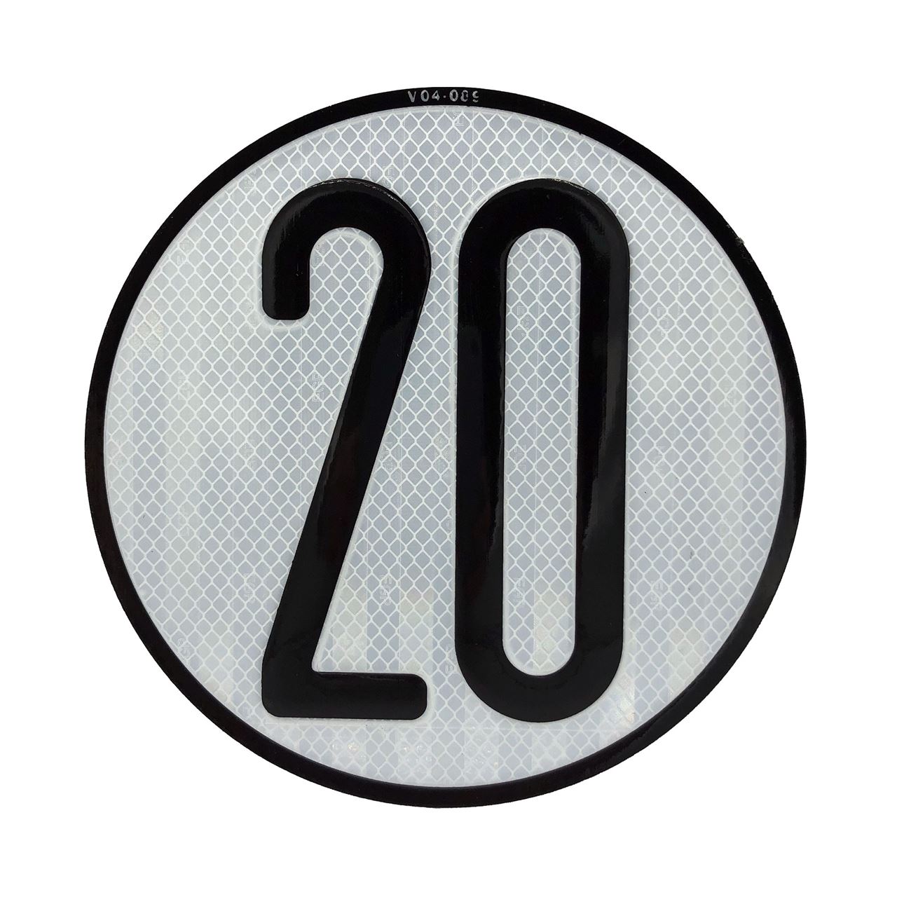 Disco reflectante de límite de velocidad de 20 km/h.
