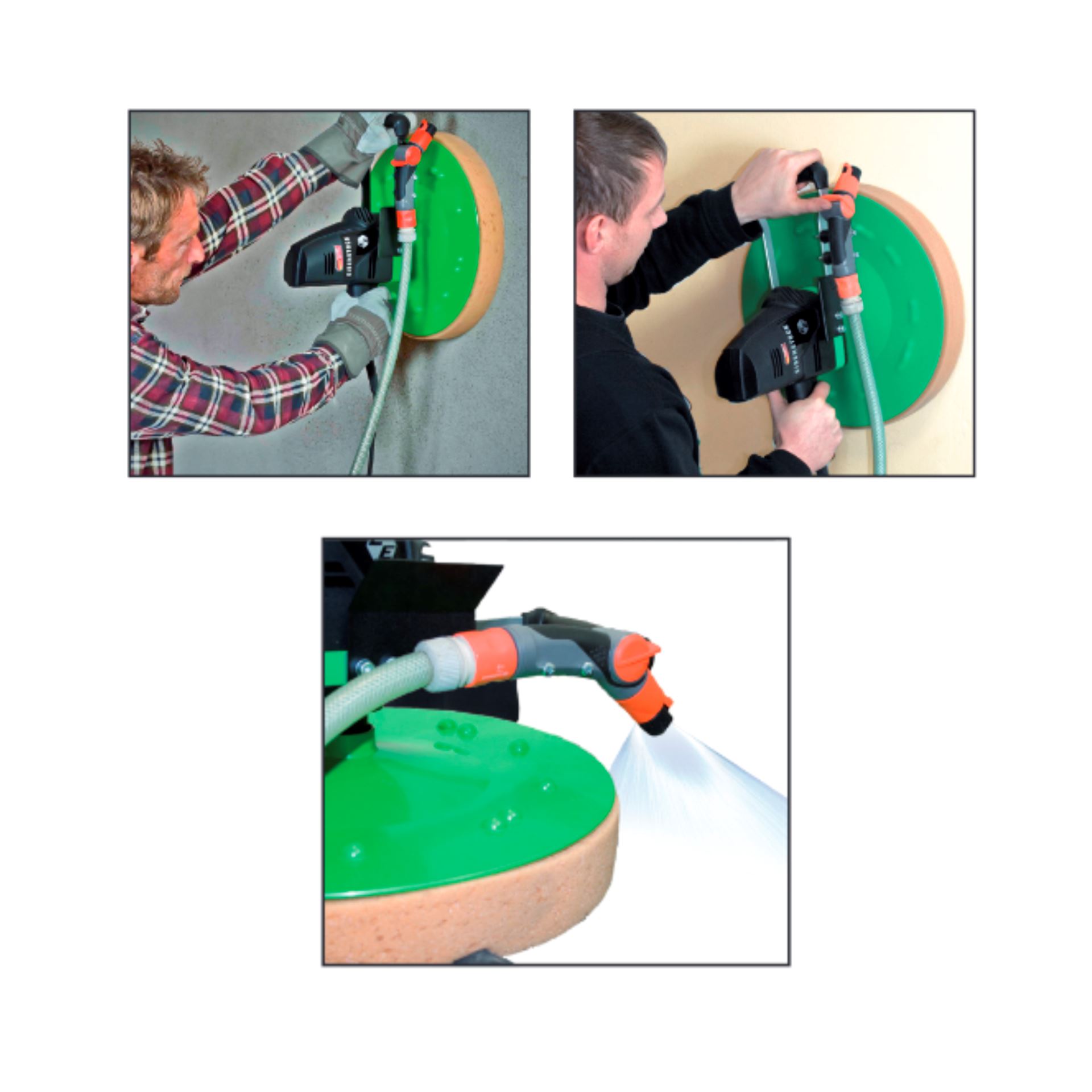 Se puede montar discos para talochar, devastar, lijar, fratasar, raspar.