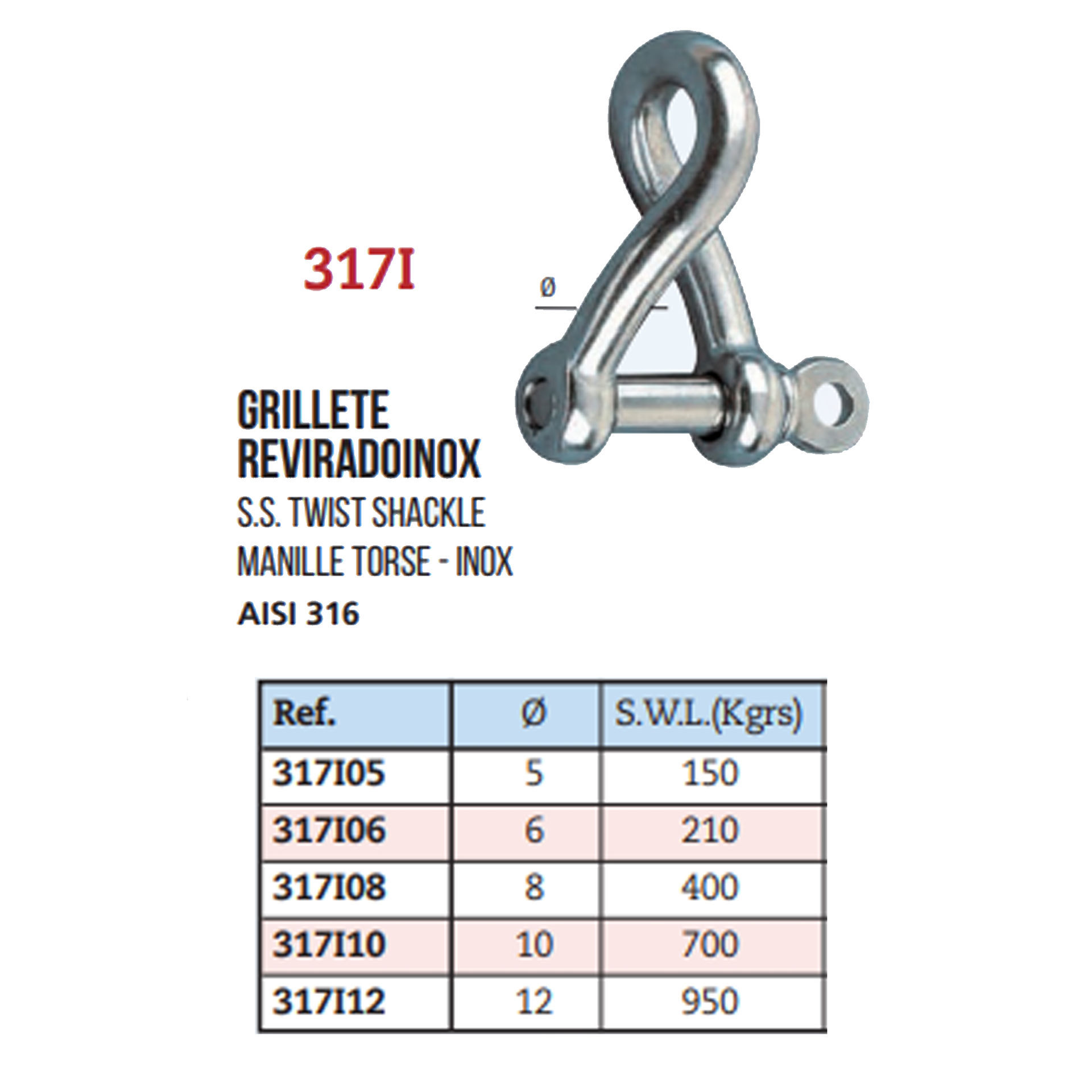 Grillete revirado inoxidable