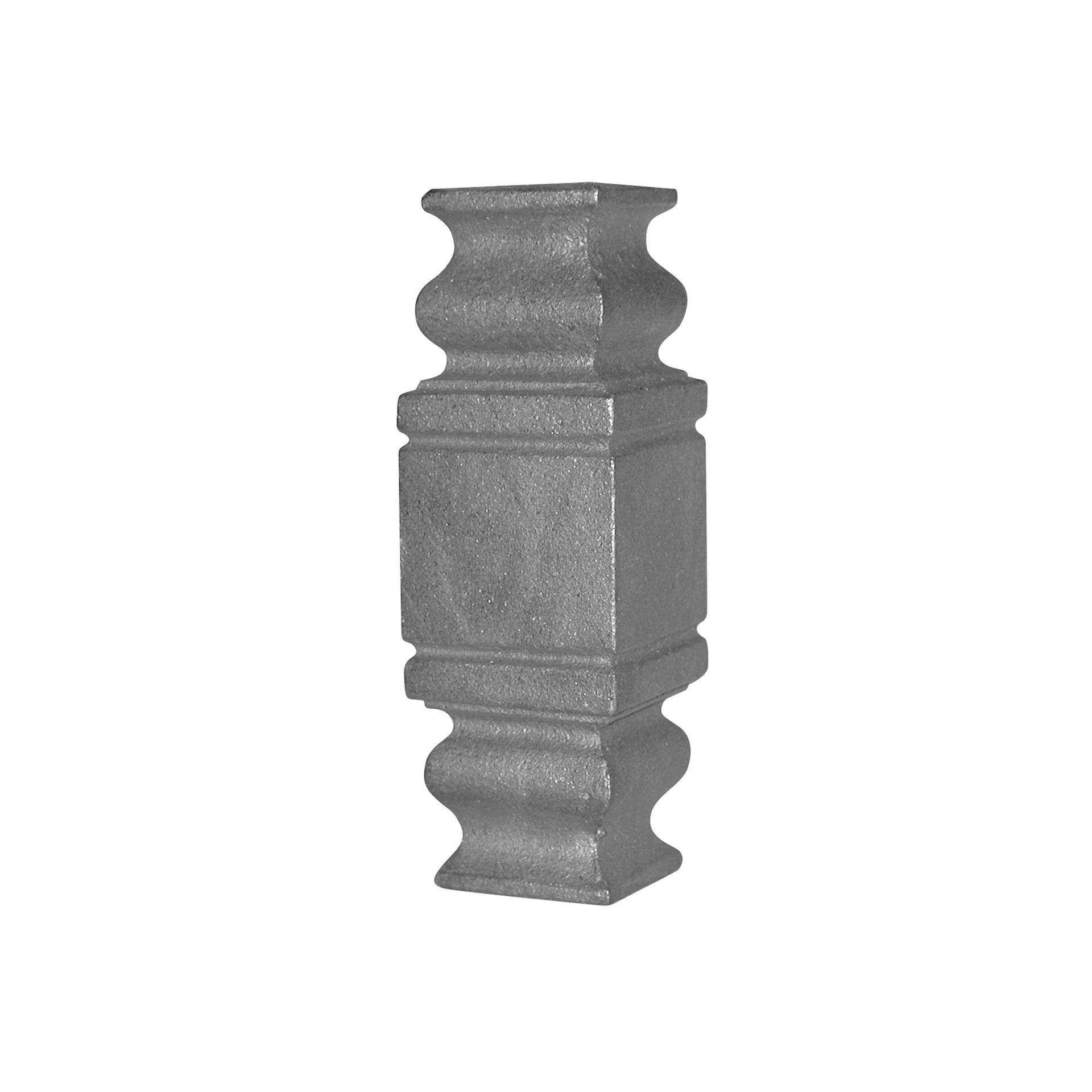 Macolla de hierro fundido con agujero cuadrado de 16 mm de diámetro. Anchura 35 mm. Altura 105 mm.