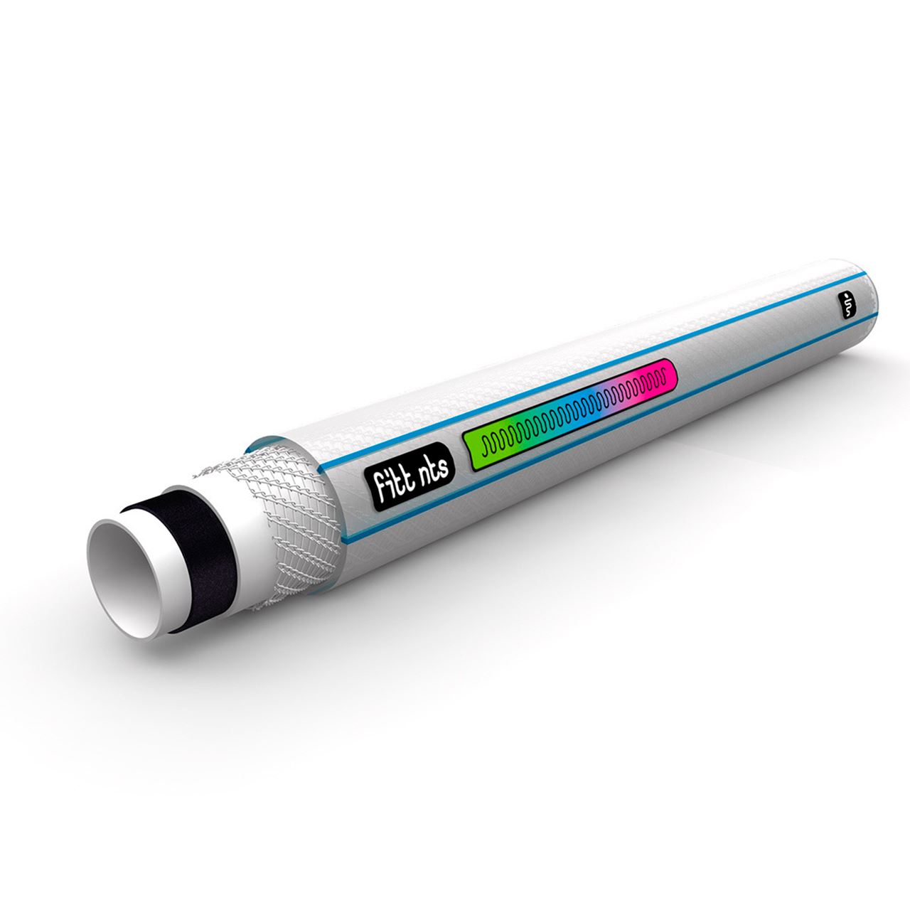 Manguera con una estructura de 6 capas con revestimiento exterior transparente y 2 rayas azules.