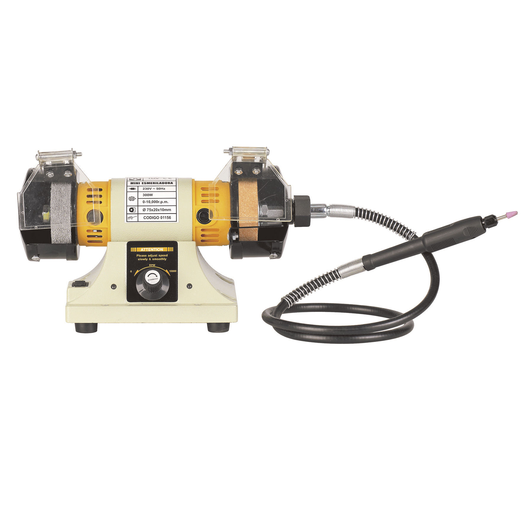 Mini esmeriladora con diámetro de muela 75x20x10 mm.