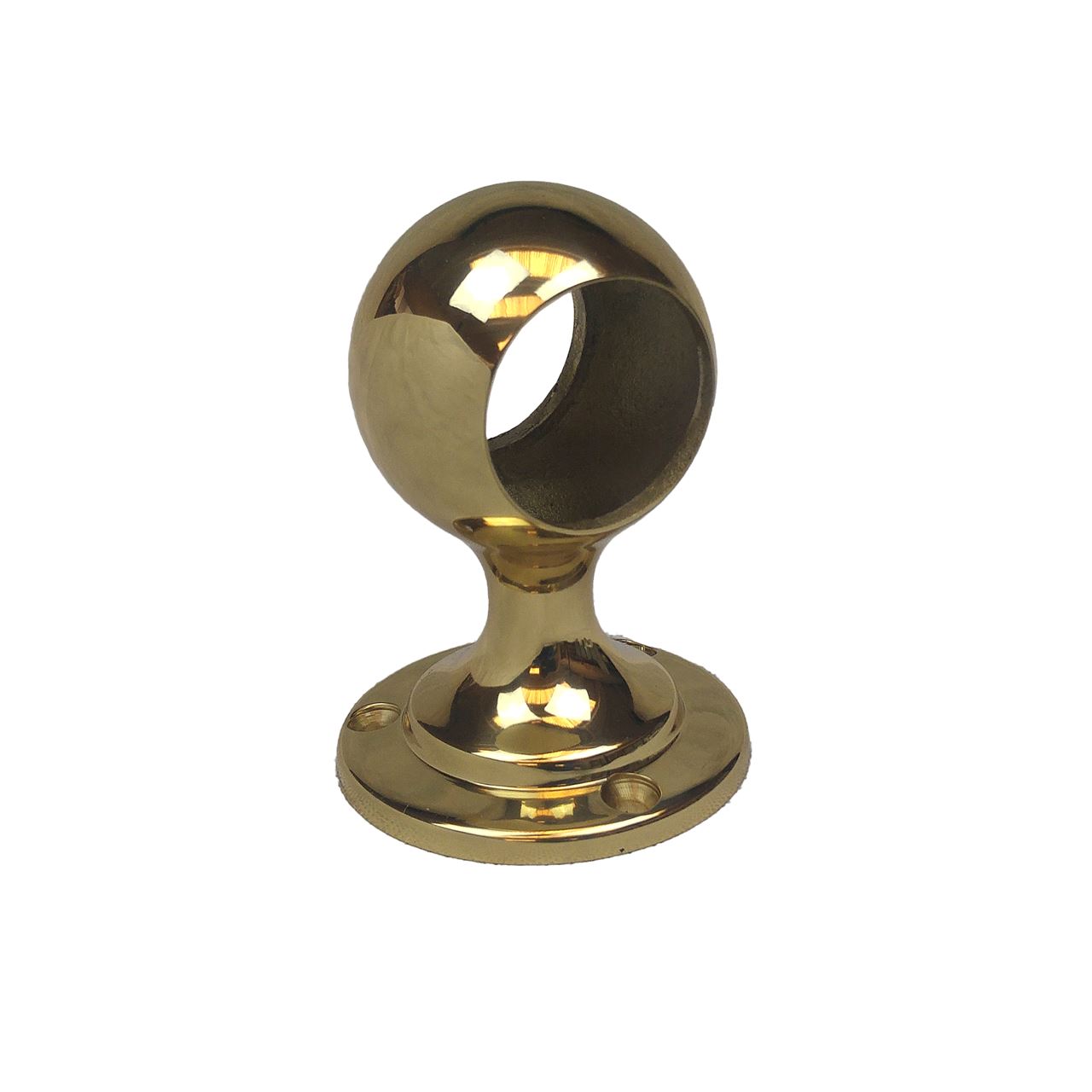 Soporte pasamanos pasante de latón dorado brillo.