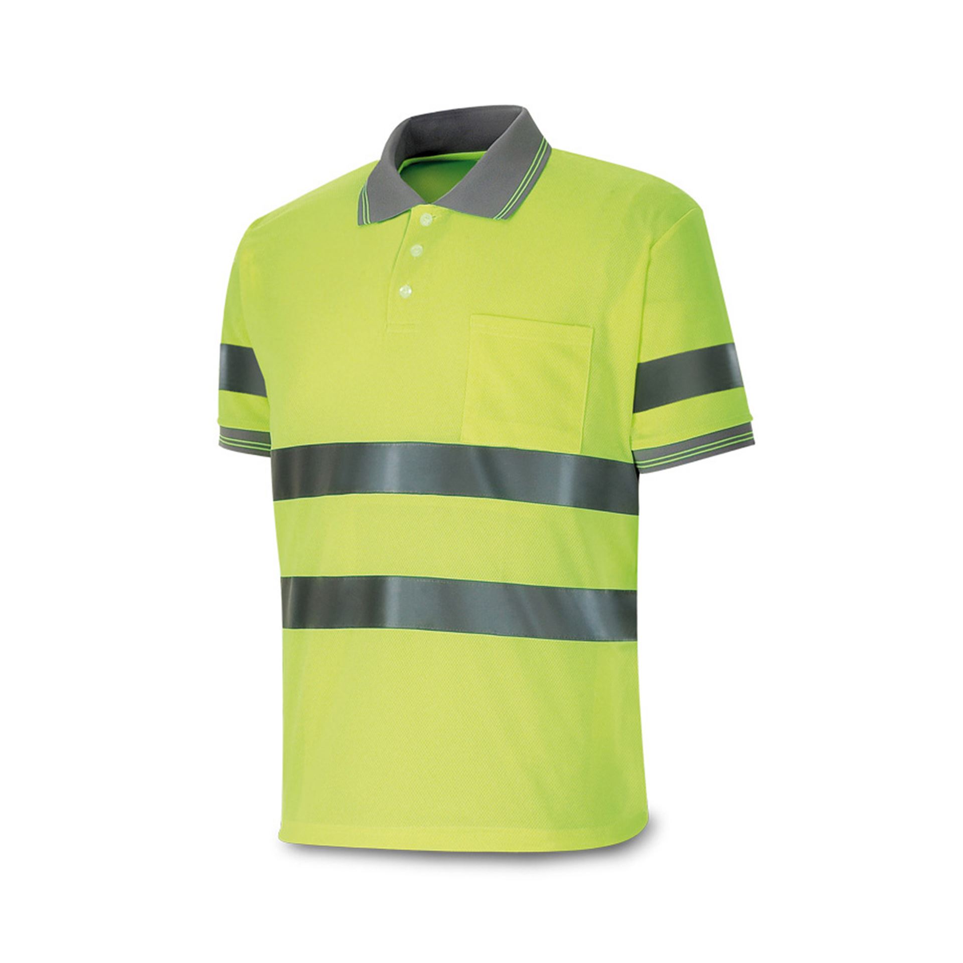 Polo amarillo de alta visibilidad fabricado en poliéster especial de alta transpirabilidad y absorción del sudor.