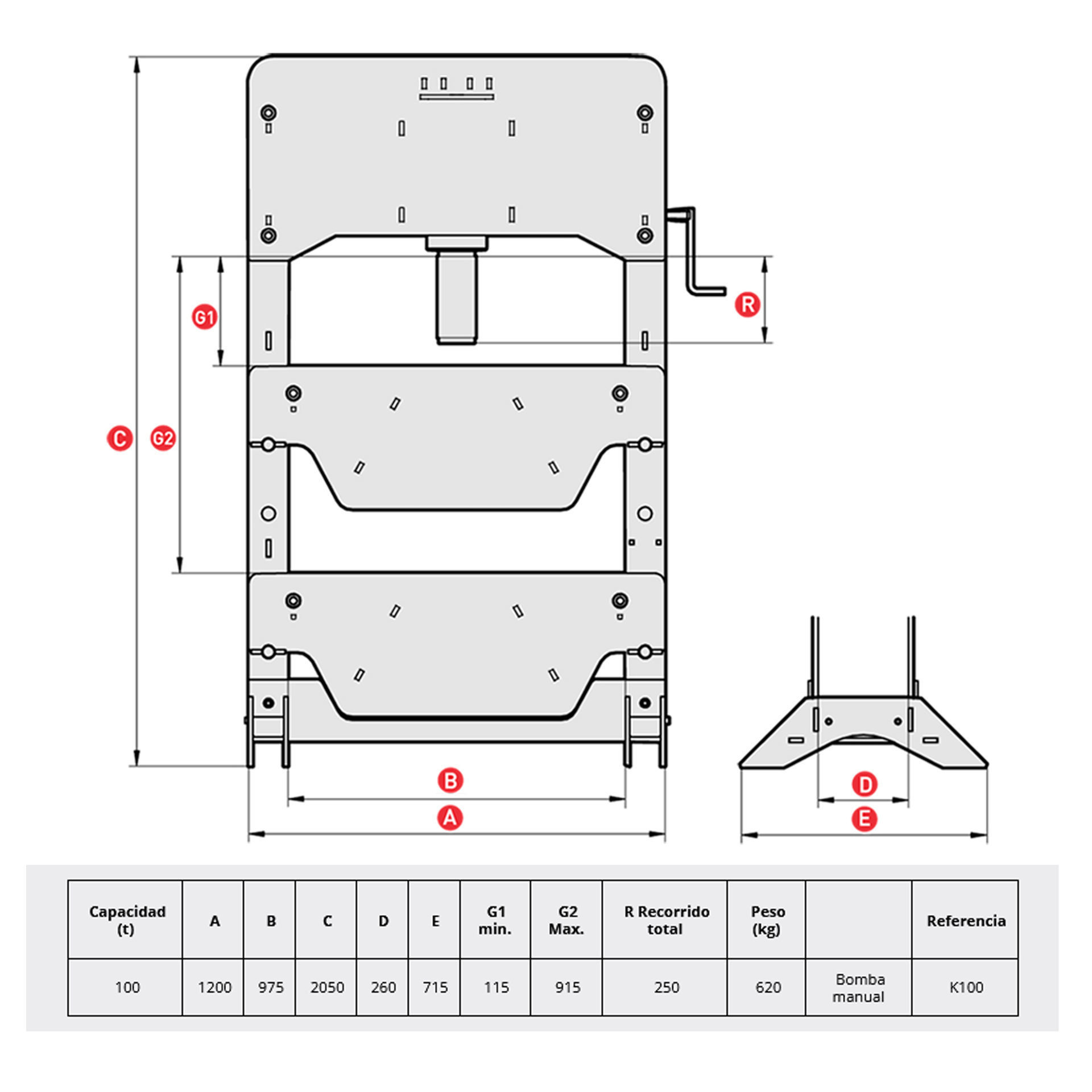 Prensa hidráulica de taller con capacidad de 100.000 Kg.