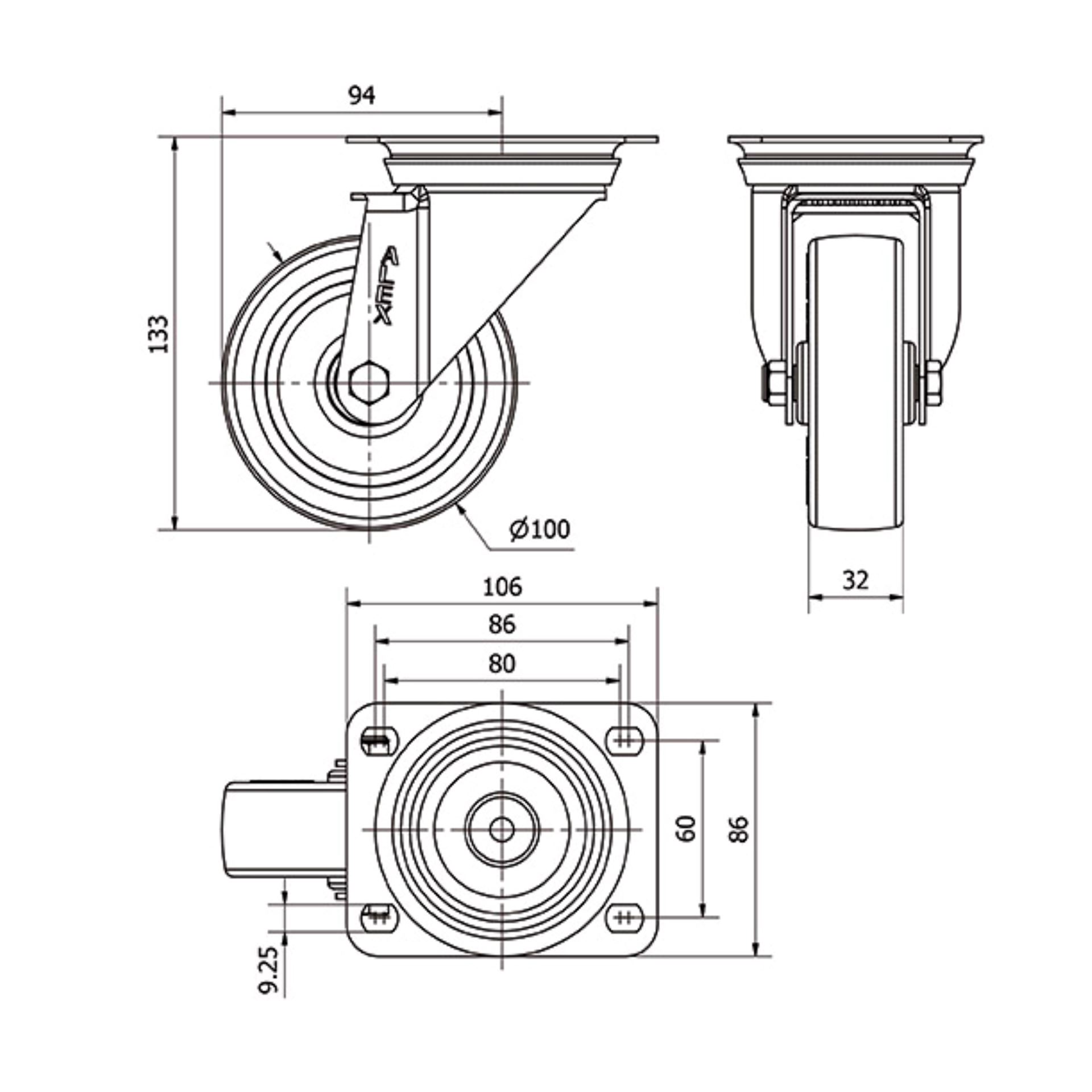 Distancia entre agujeros 86/80x60 mm. Diámetro agujero 8 mm.