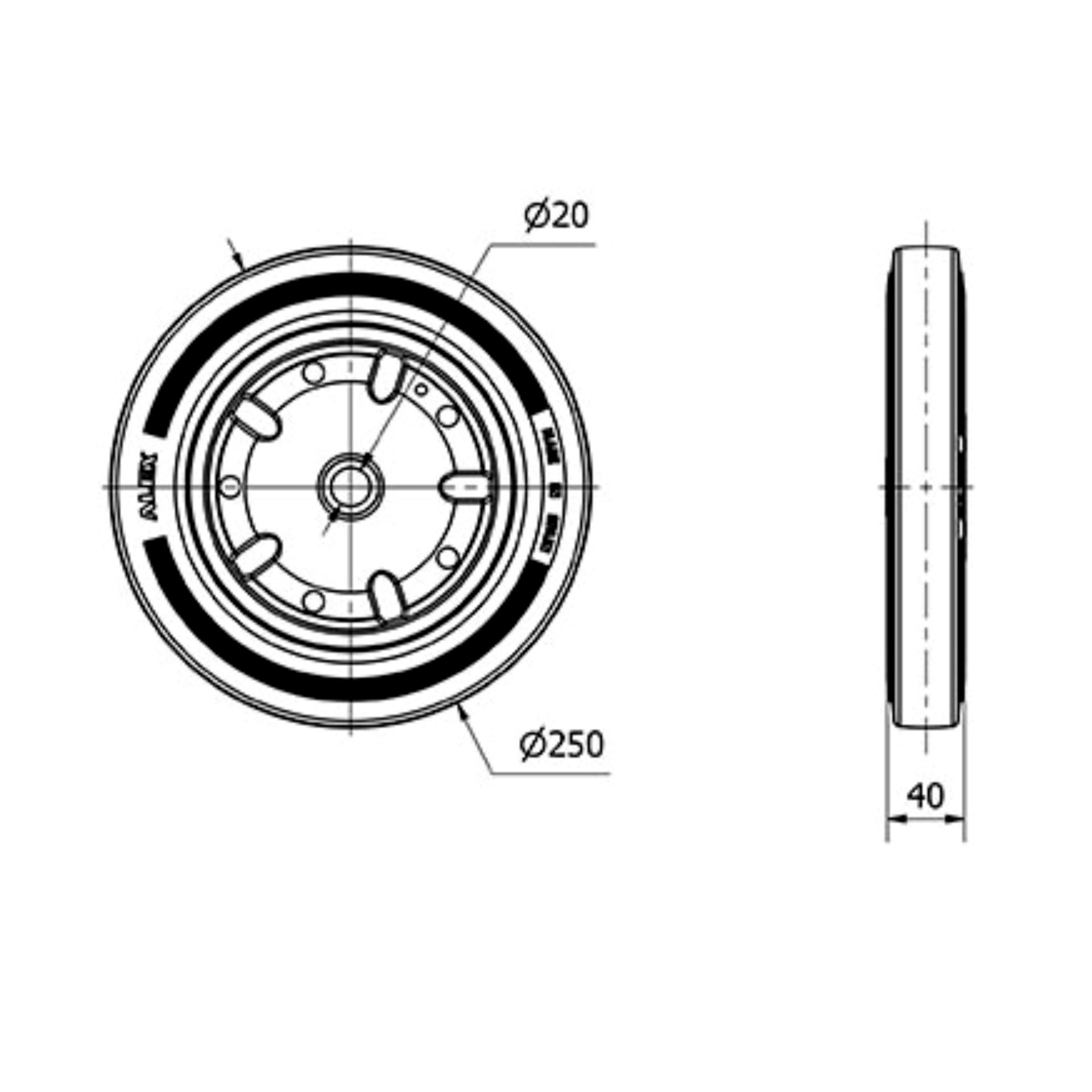 Rueda goma Alex J 2-0369 250 mm 230 kg