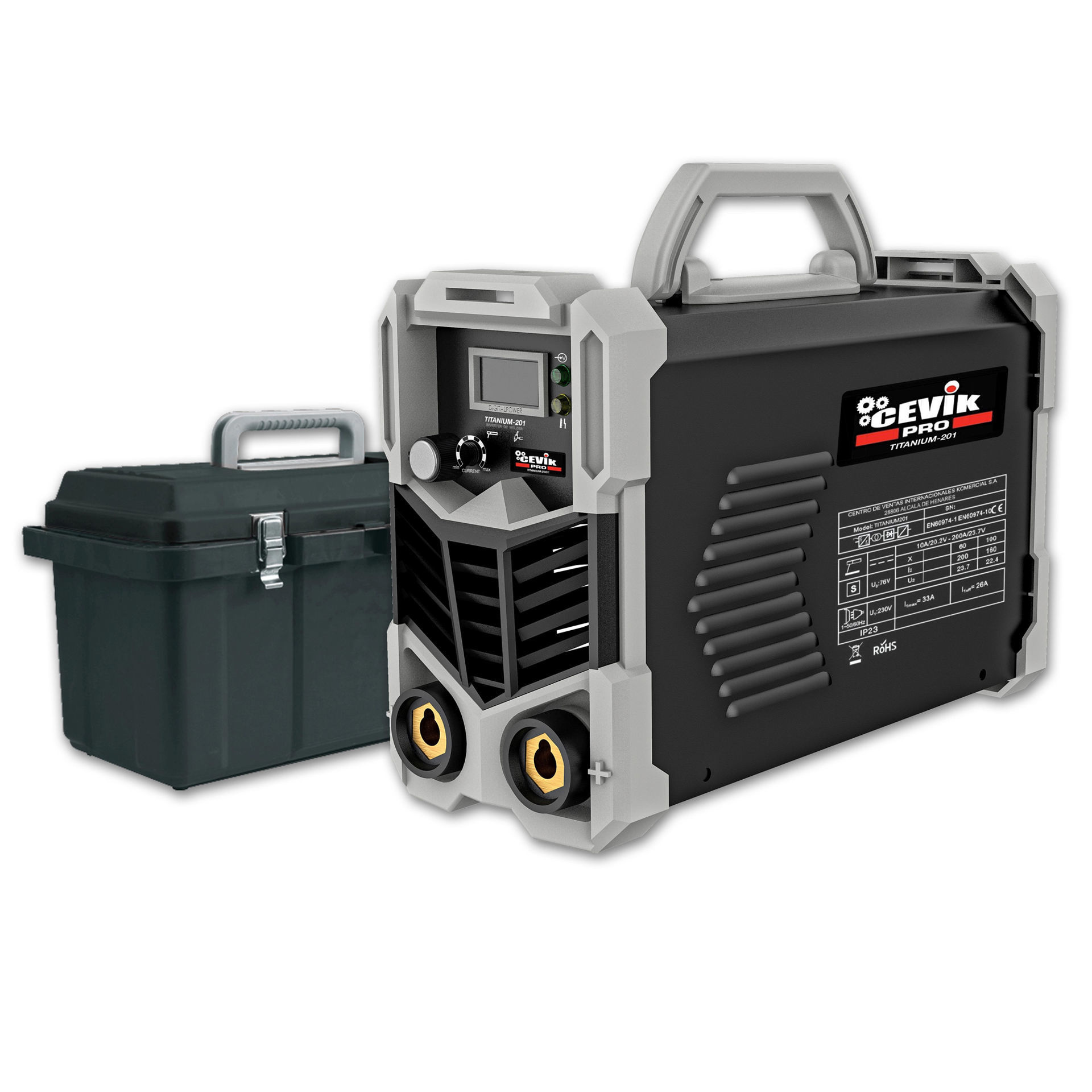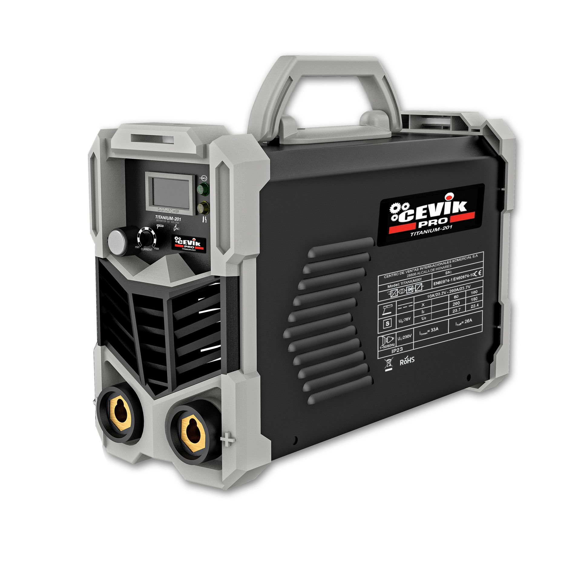 Incluye pinza masa, pinza porta-electrodos, cepillo, máscara y maletín para su transporte.
